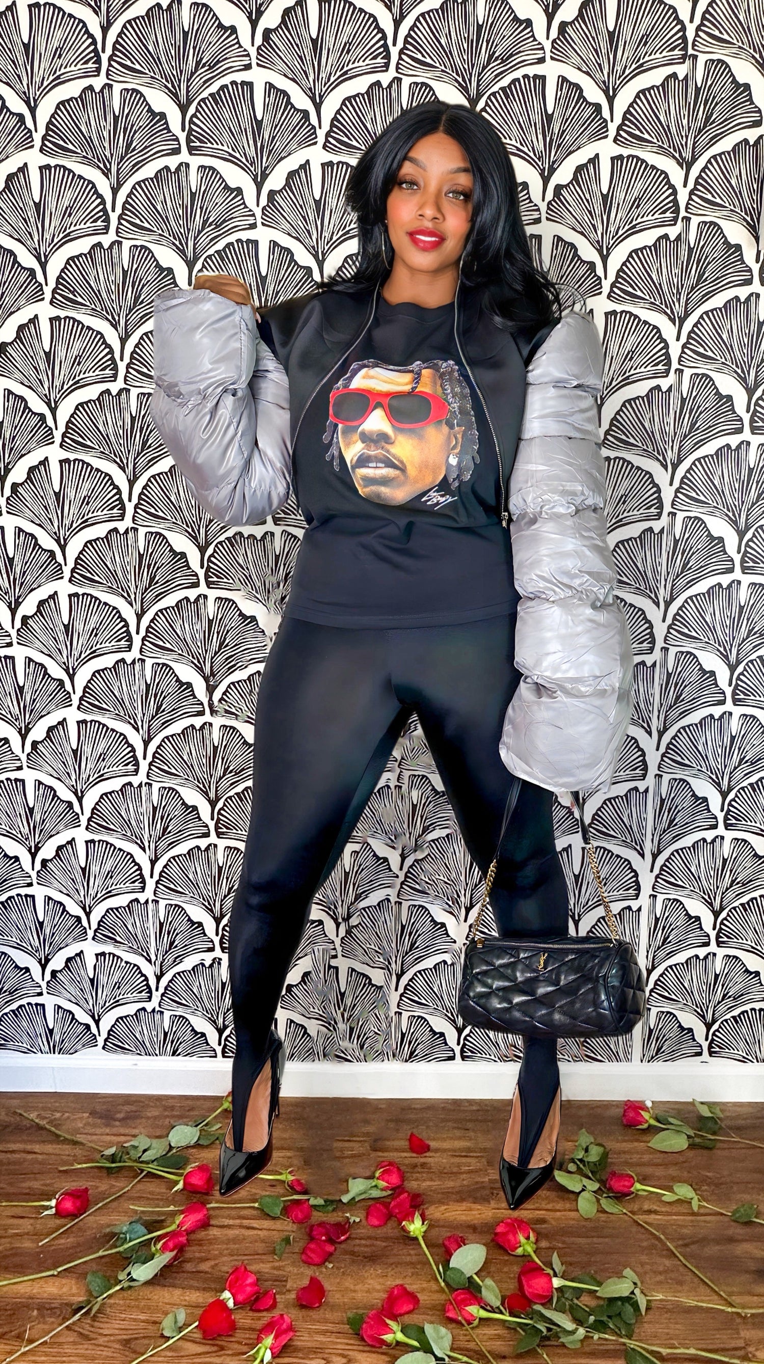 Pair it with one of our graphics tees and stirrup leggings. Runs small. Size up. *Model wearing a Large